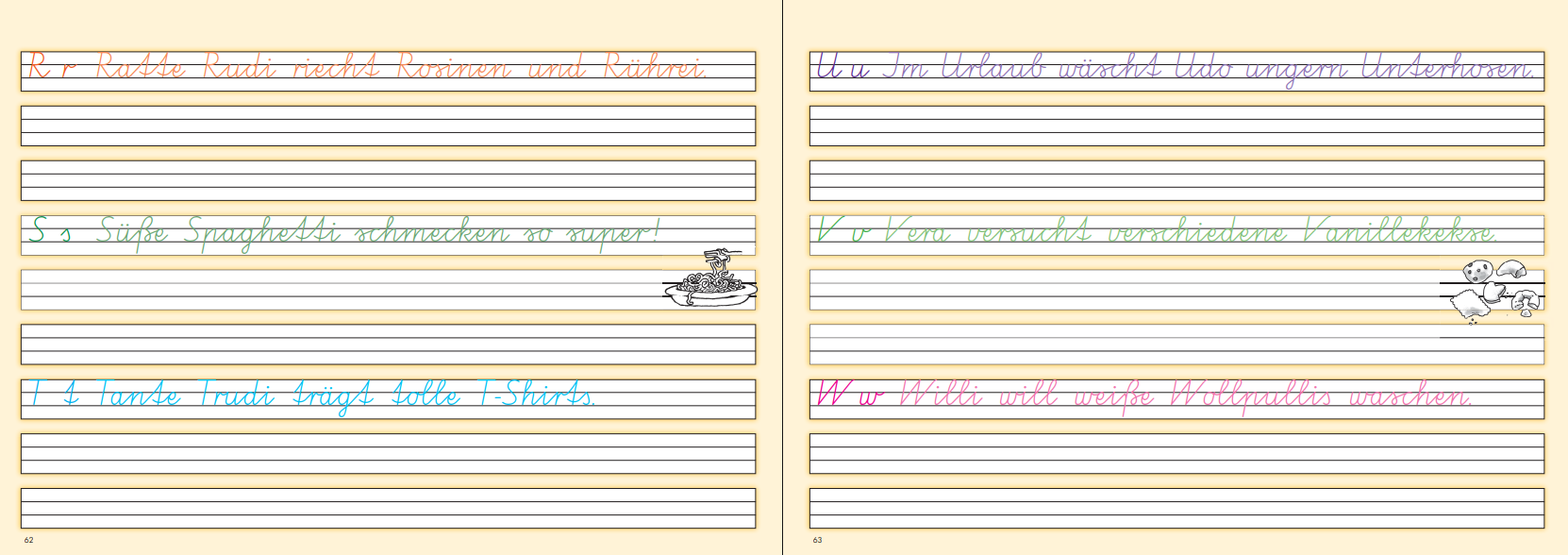 Motivierende und lustige Texte zum Nach- und Abschreiben sowie fröhliche Illustrationen sorgen für viel Freude beim Üben.